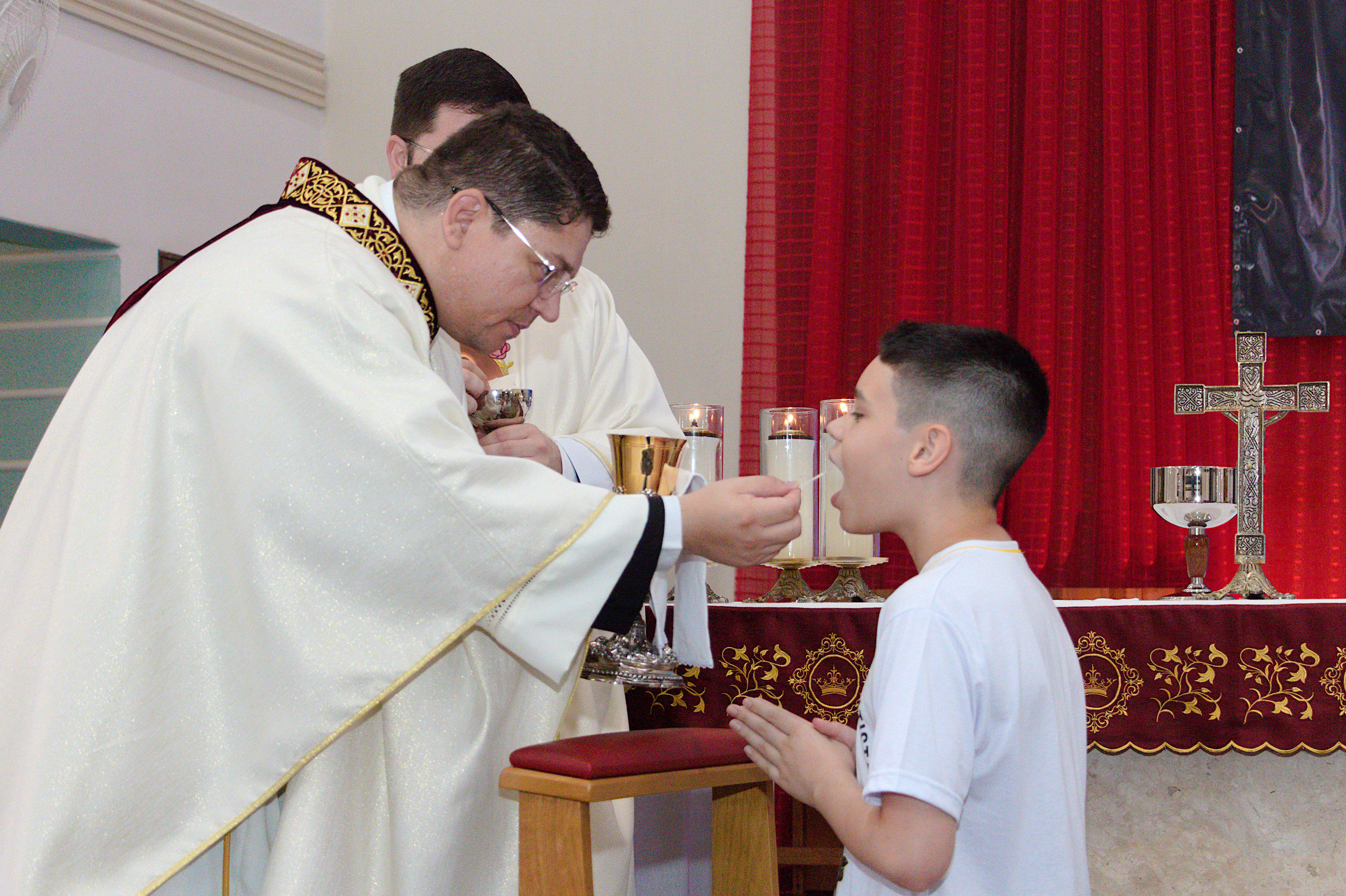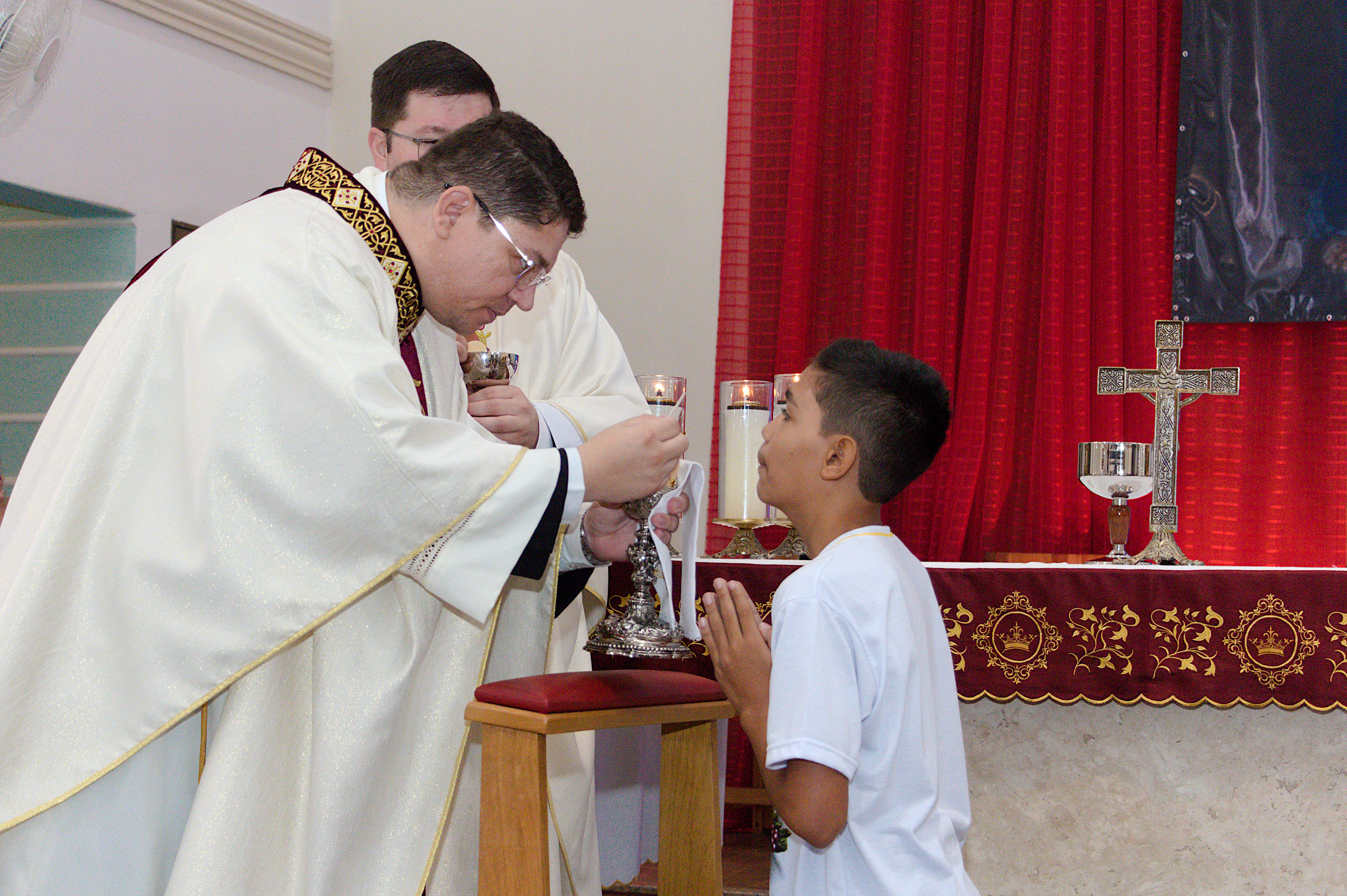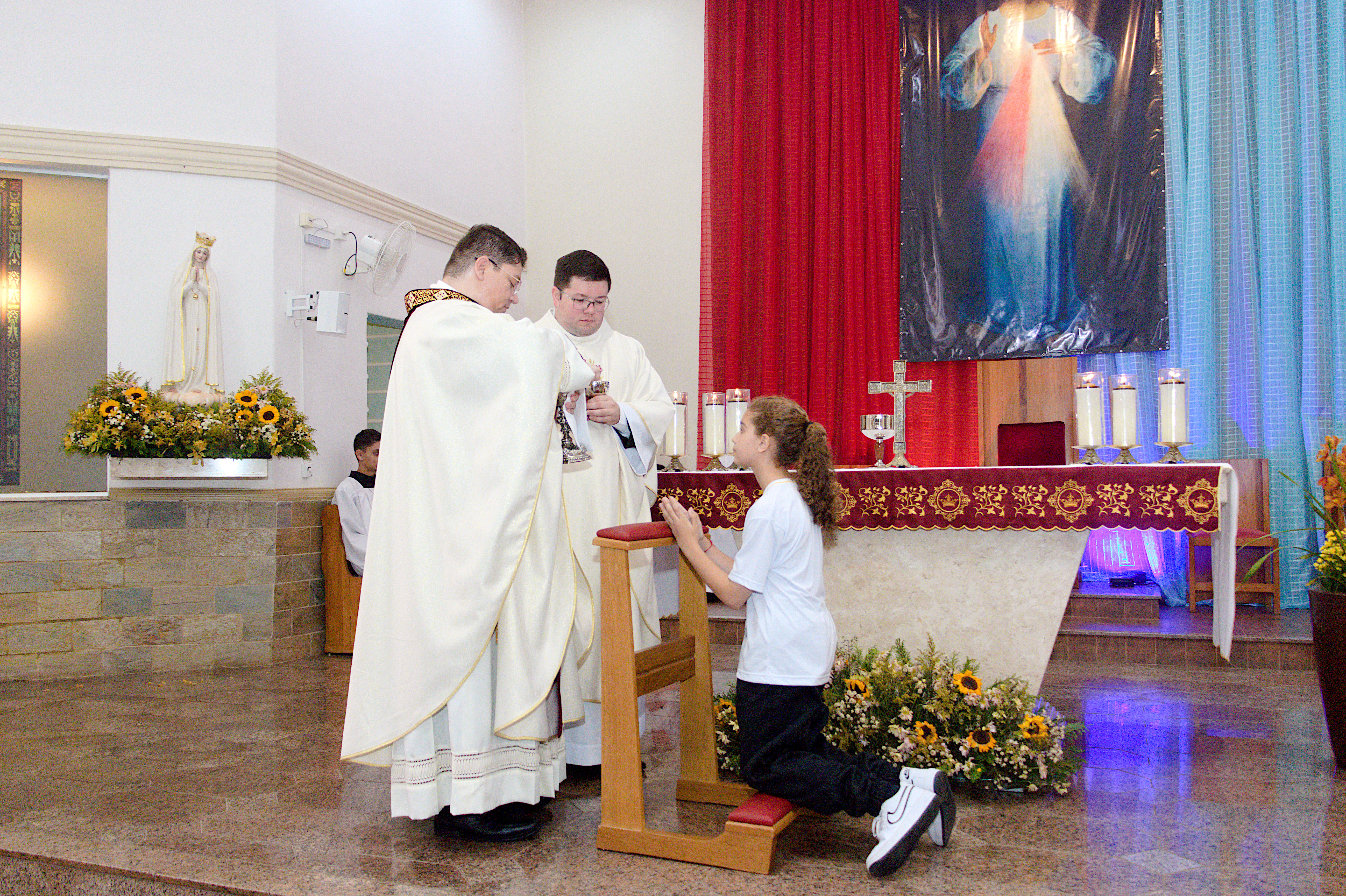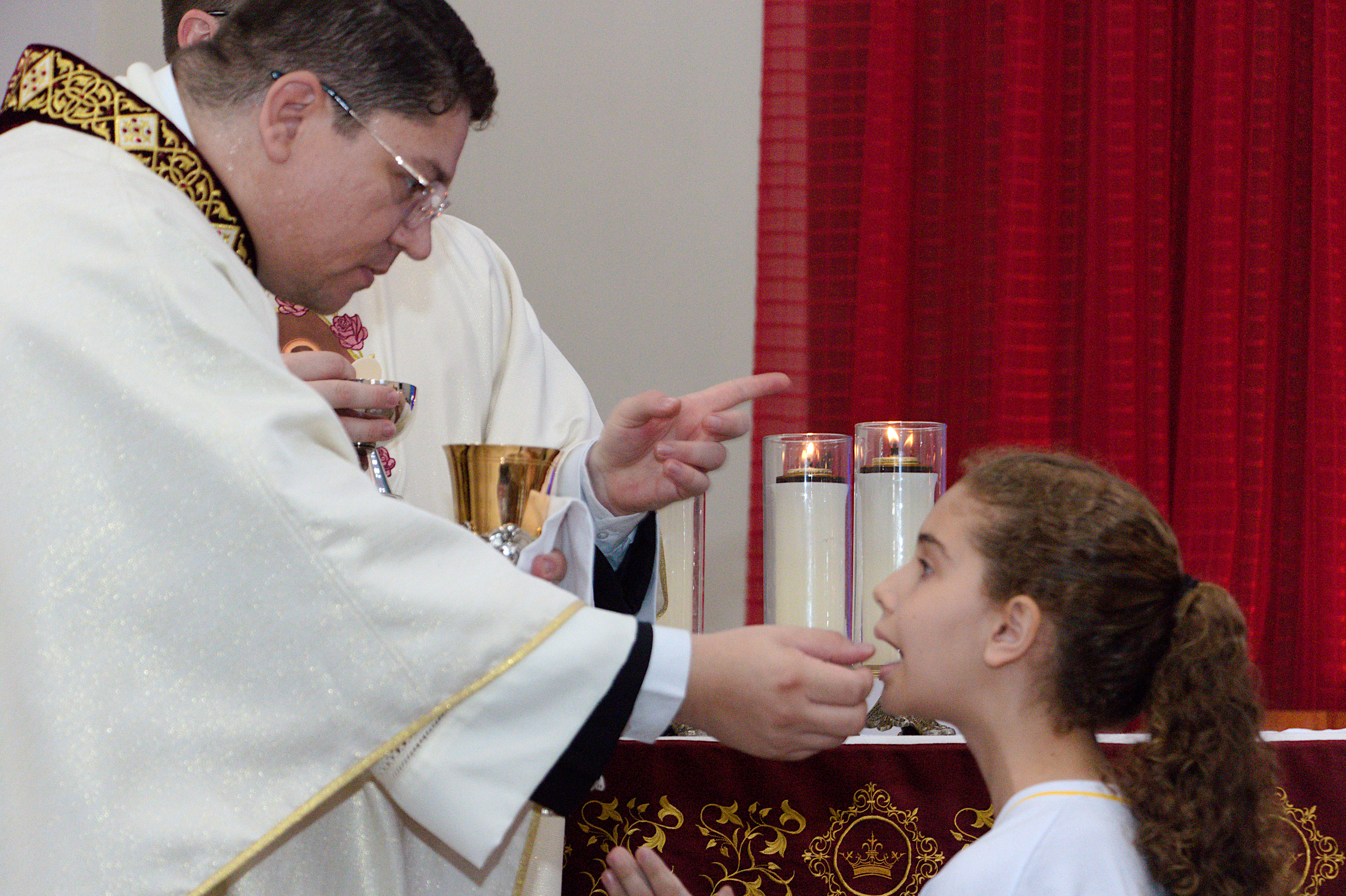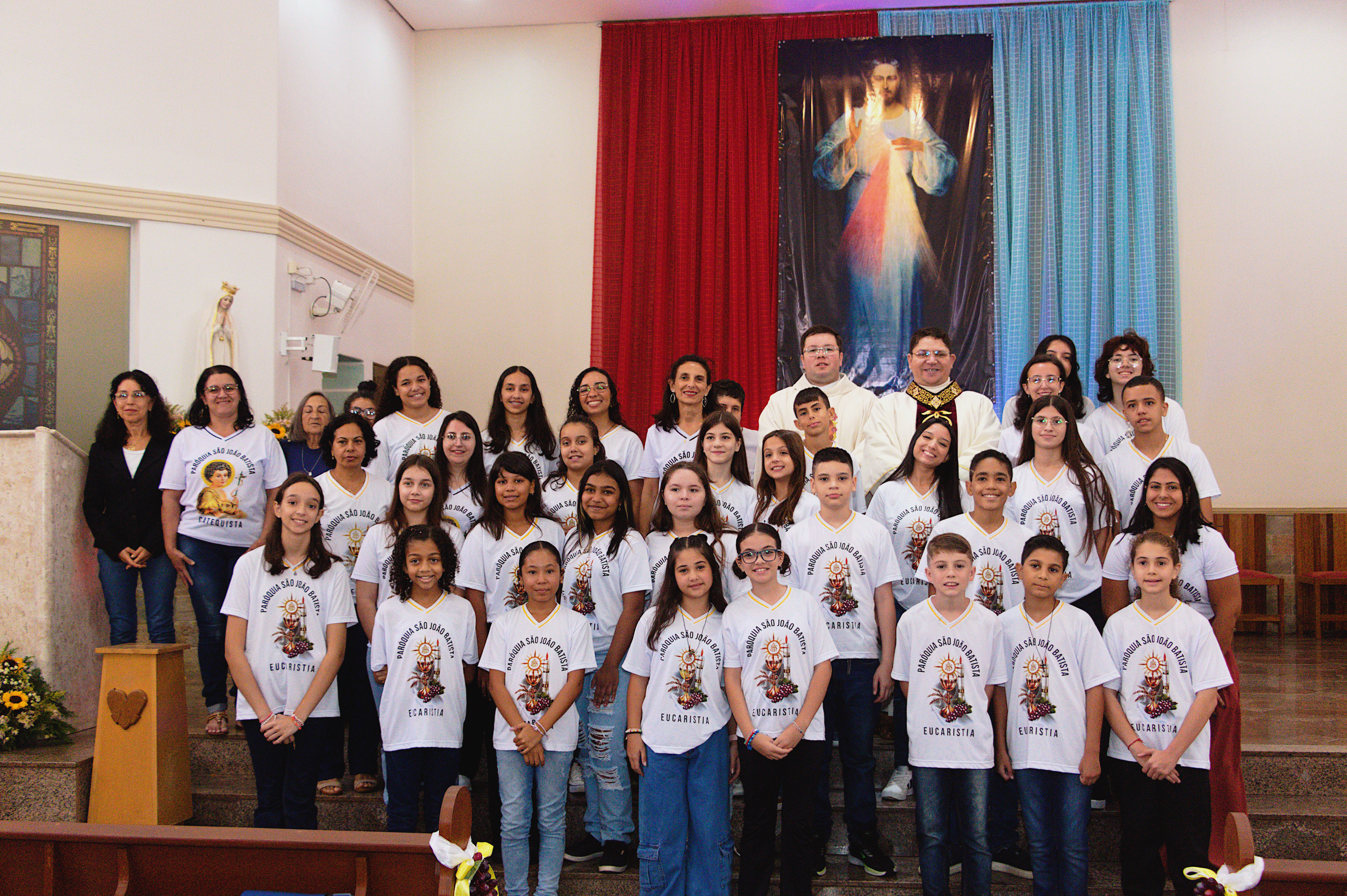 momento em que cada criança recebeu Jesus pela primeira vez na Eucaristia.