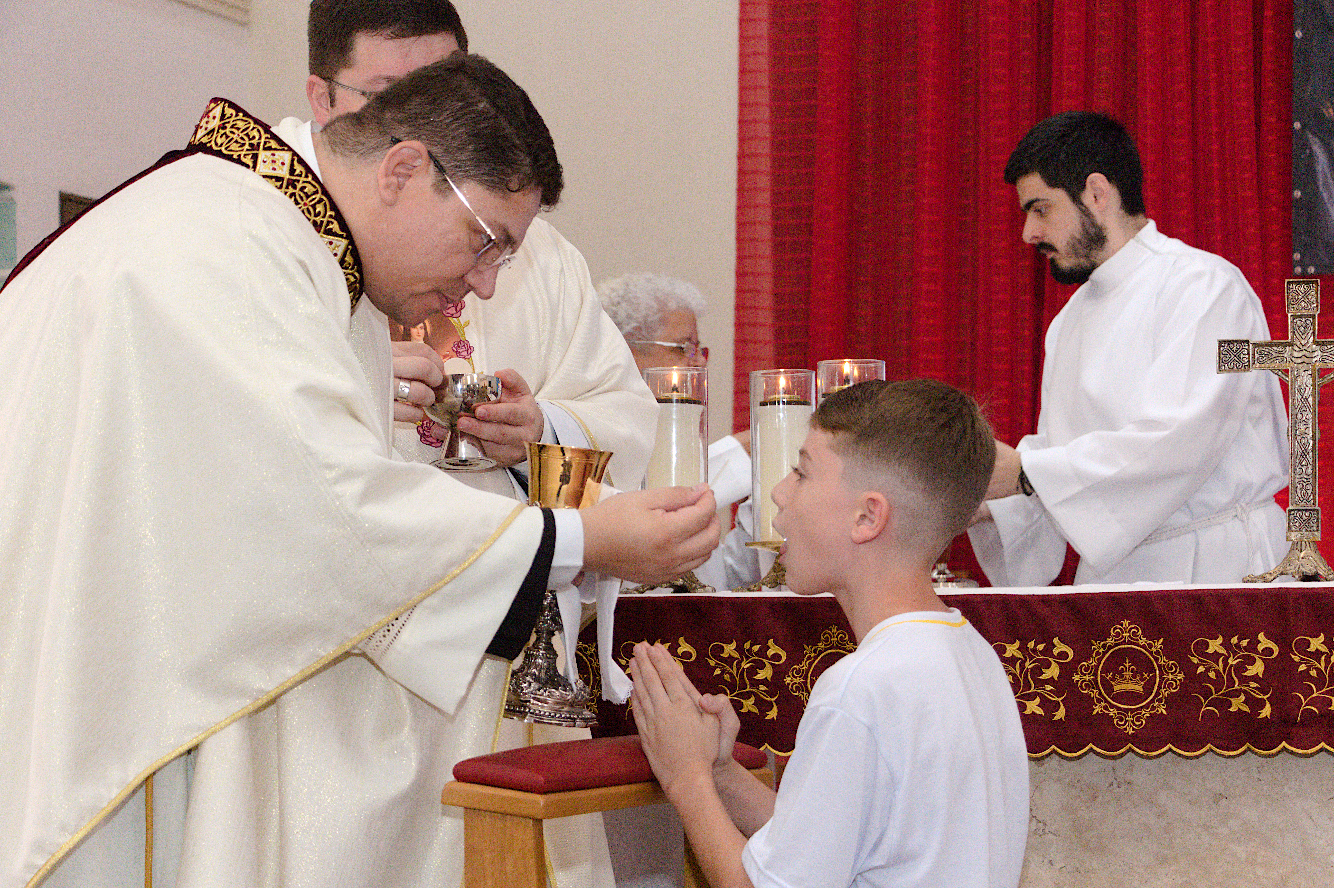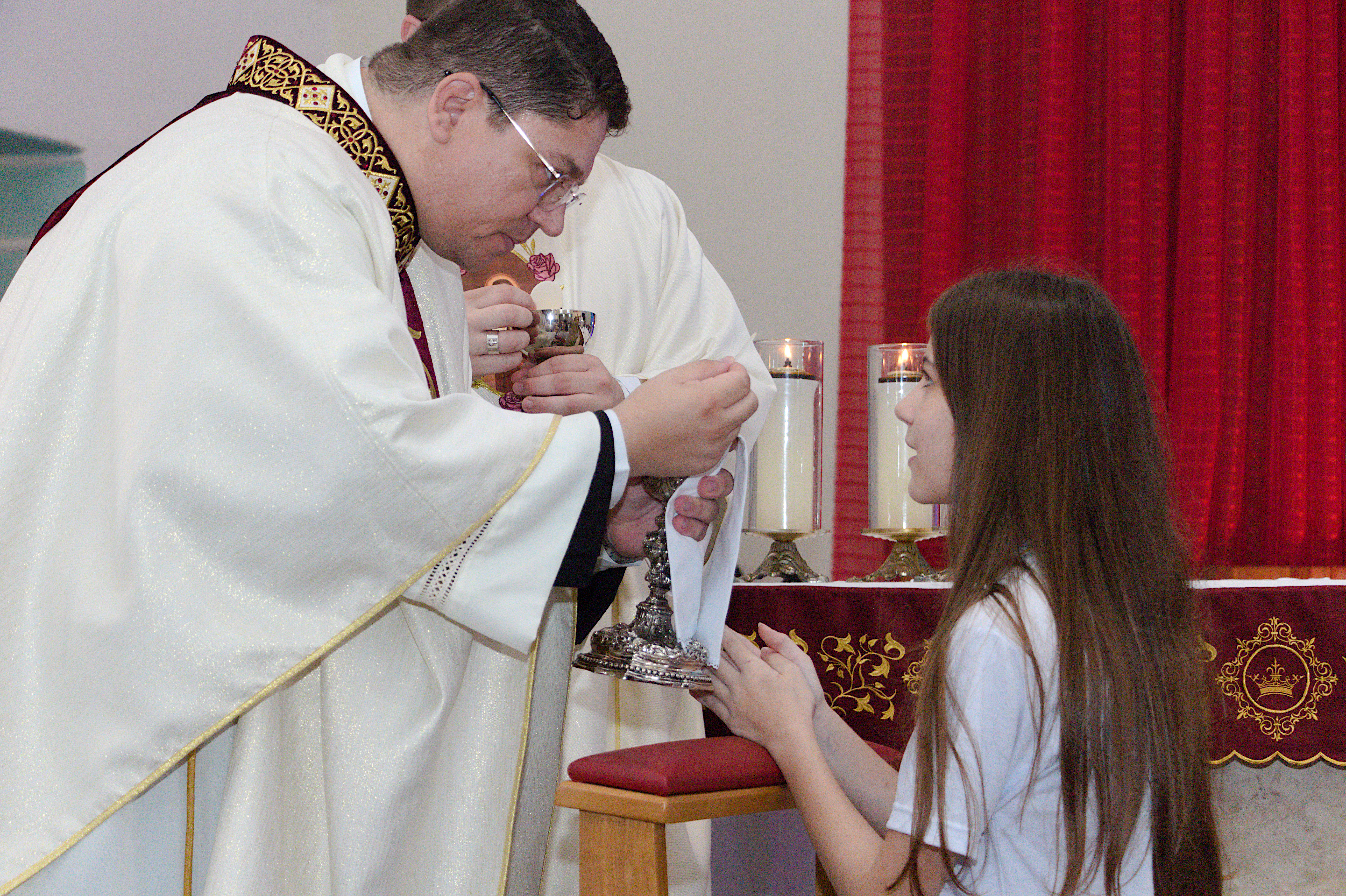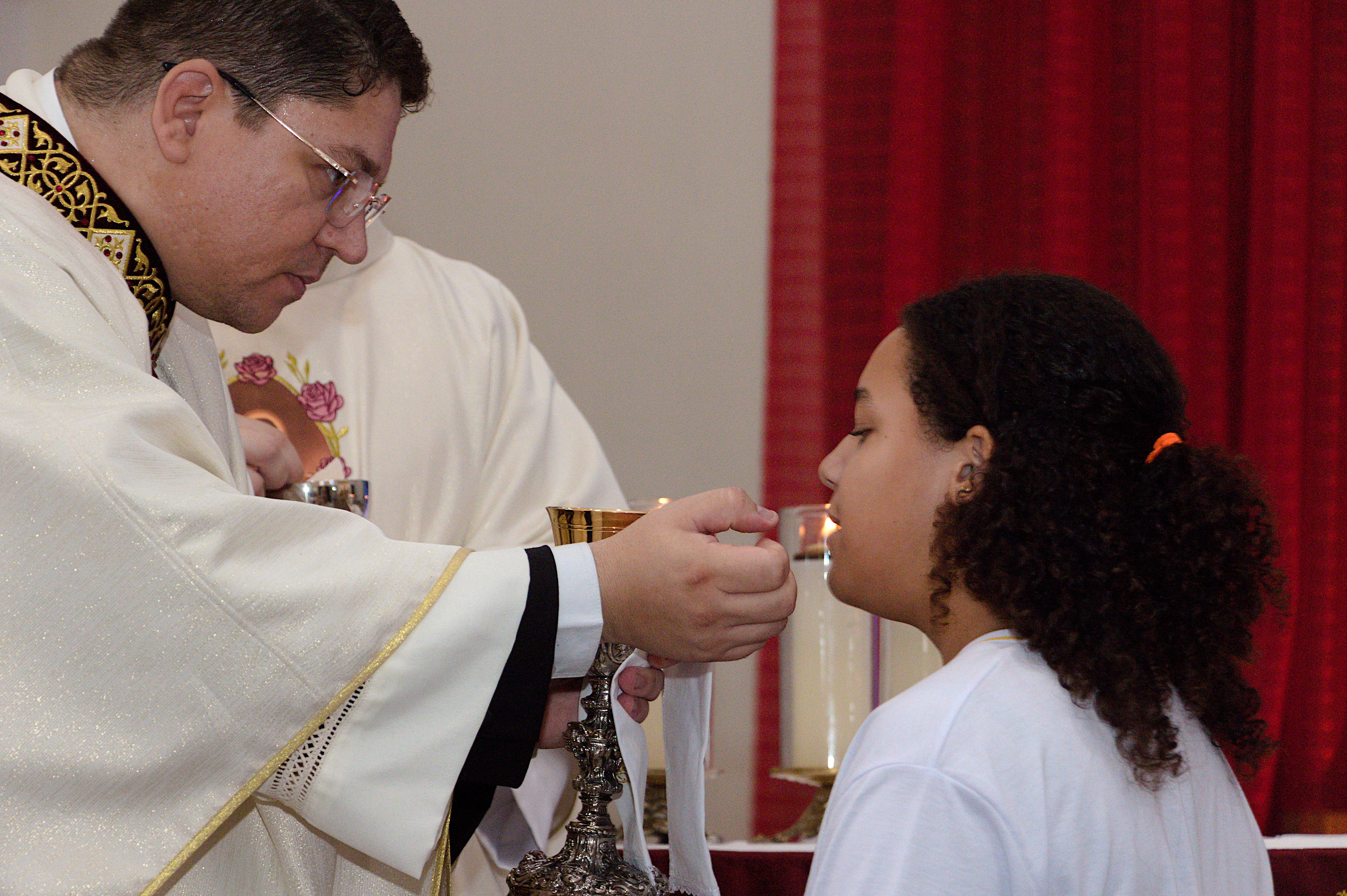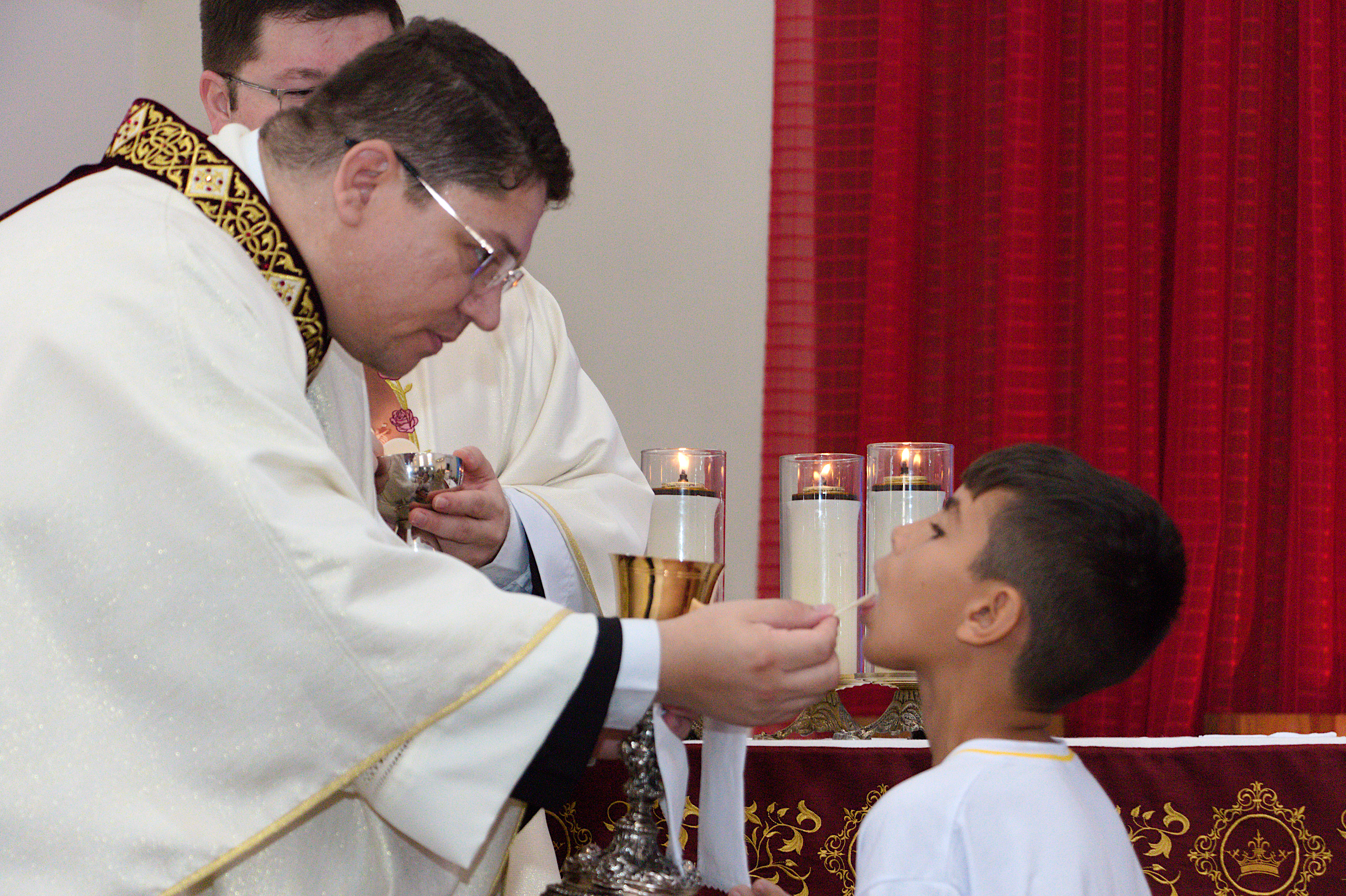 momento em que cada criança recebeu Jesus pela primeira vez na Eucaristia.