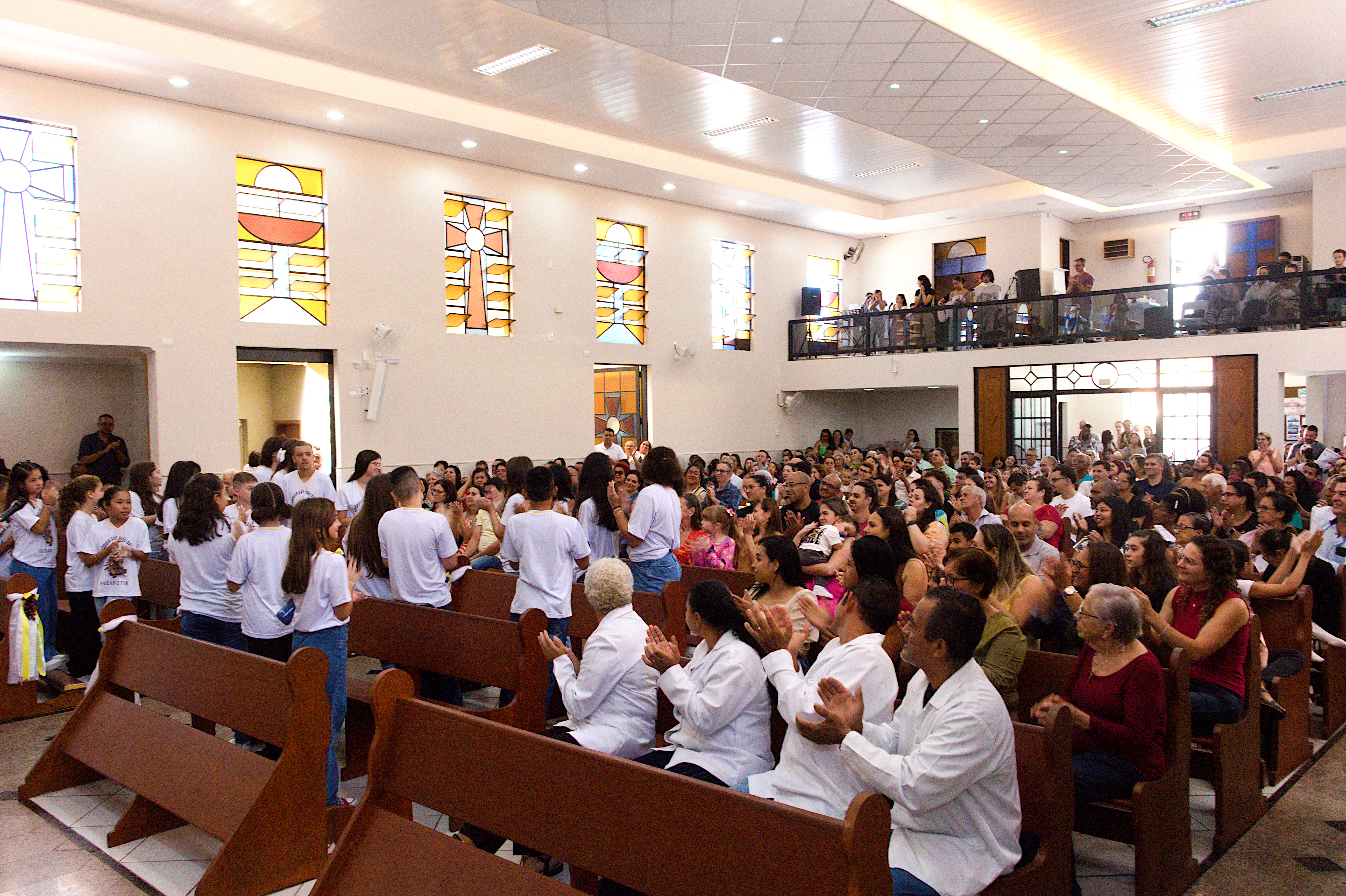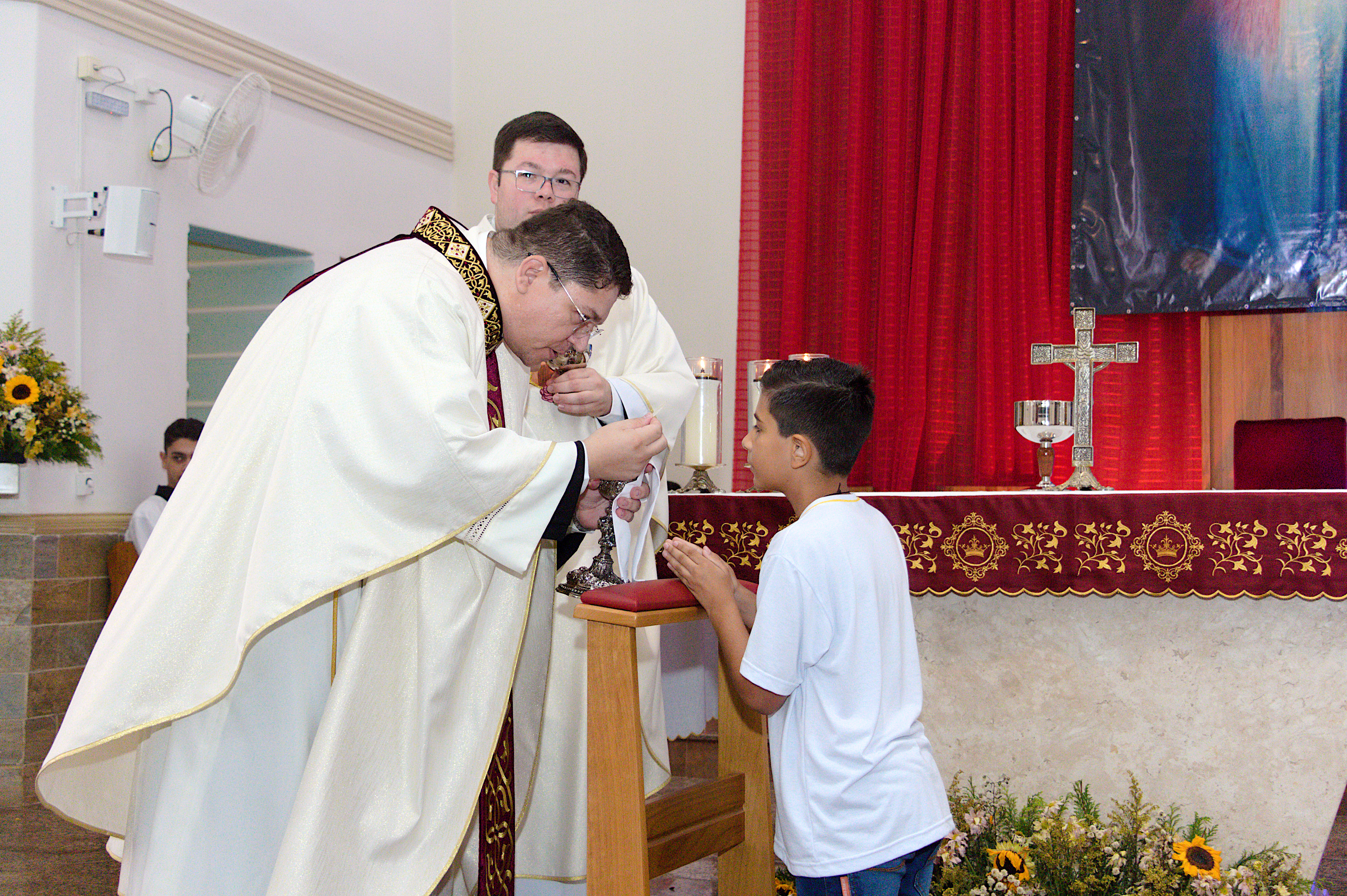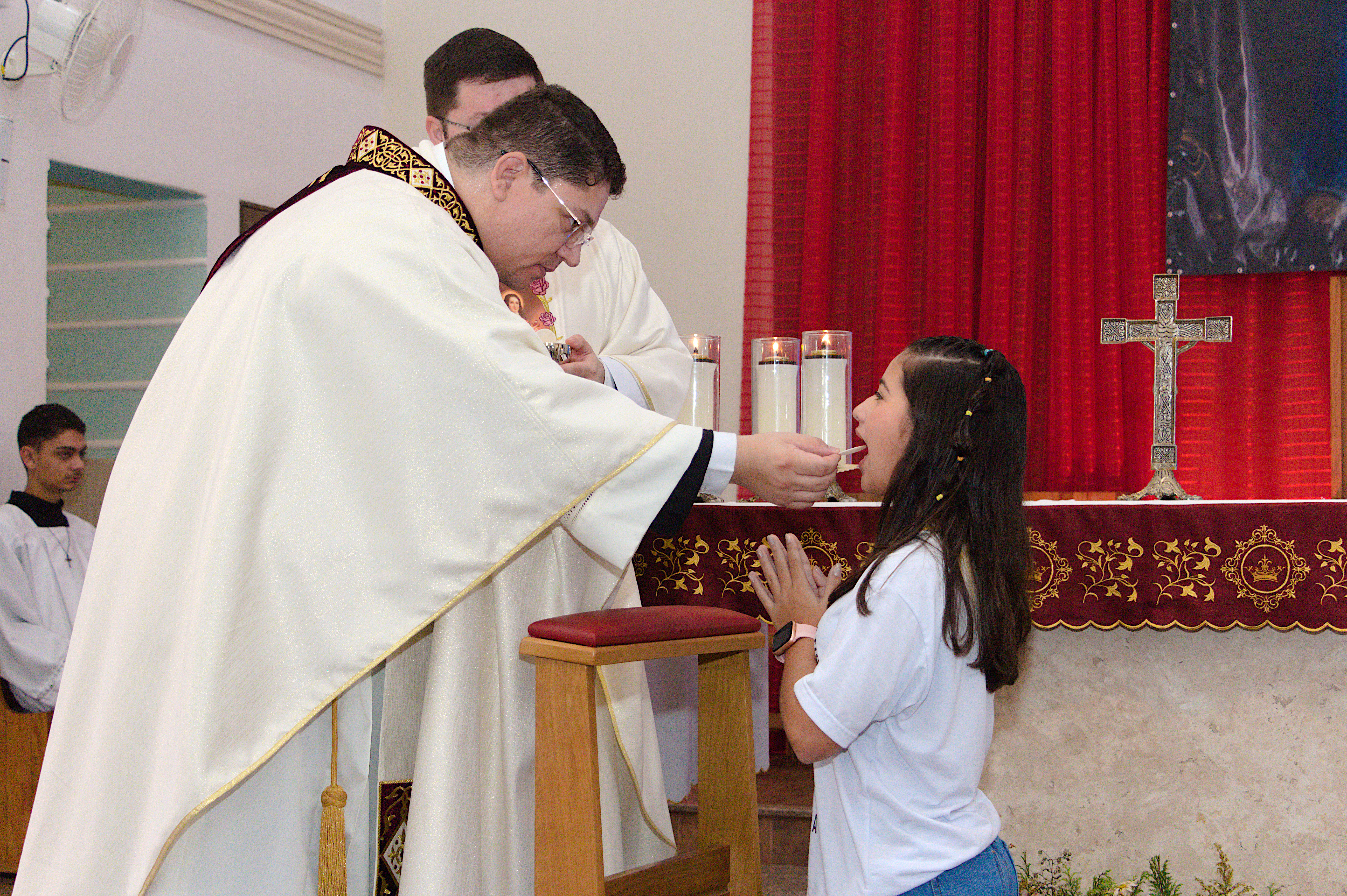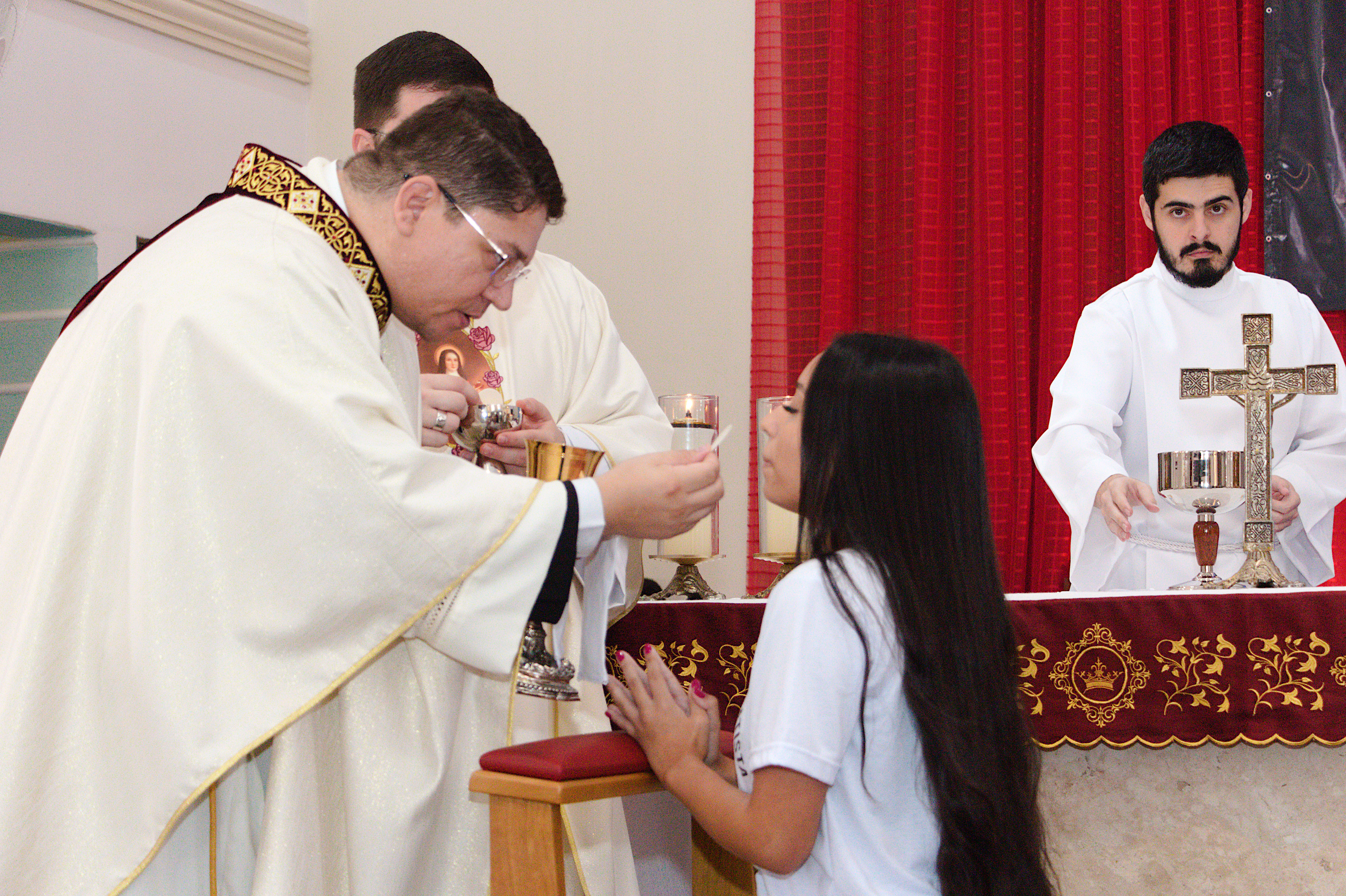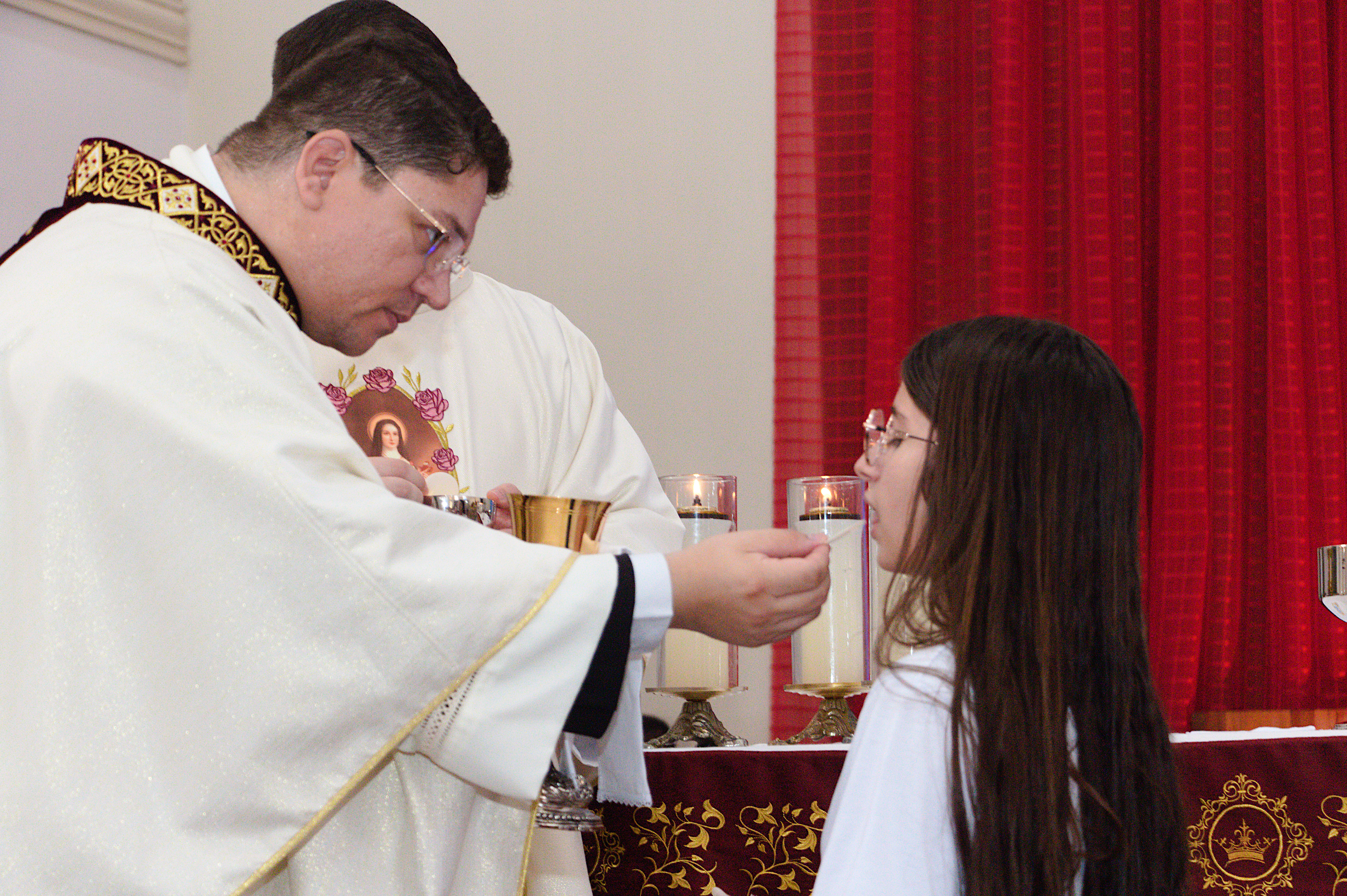 momento em que cada criança recebeu Jesus pela primeira vez na Eucaristia.