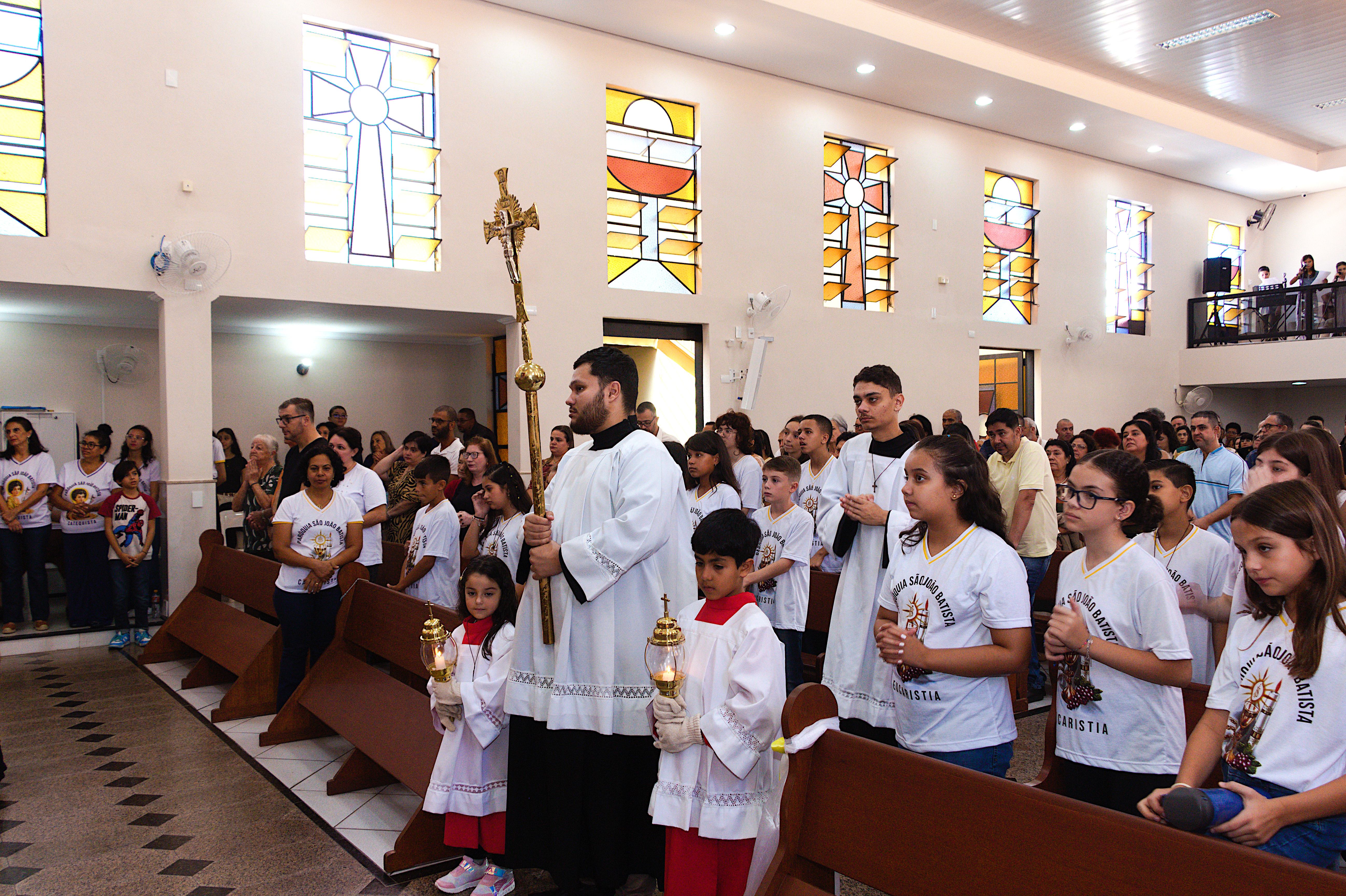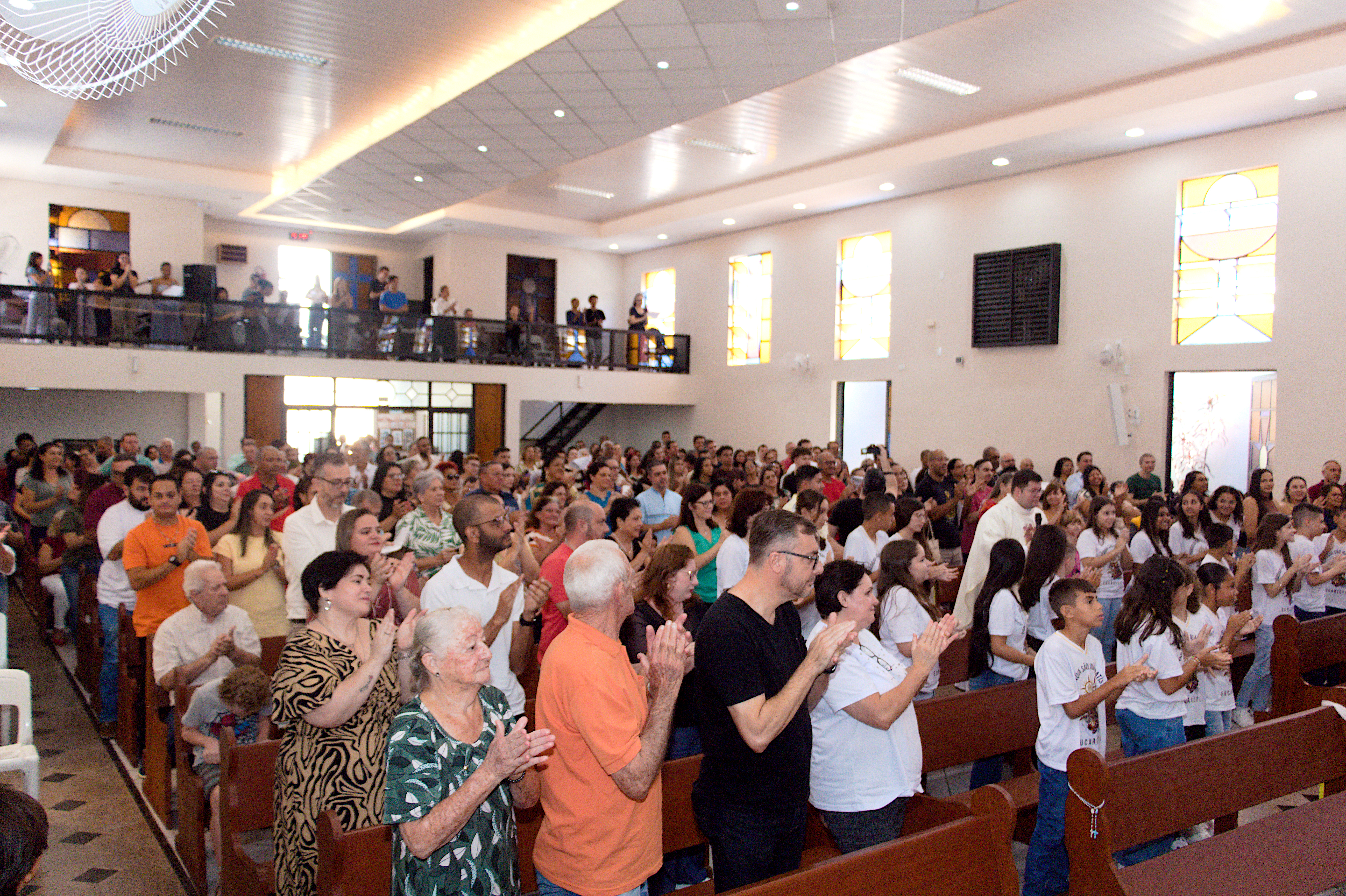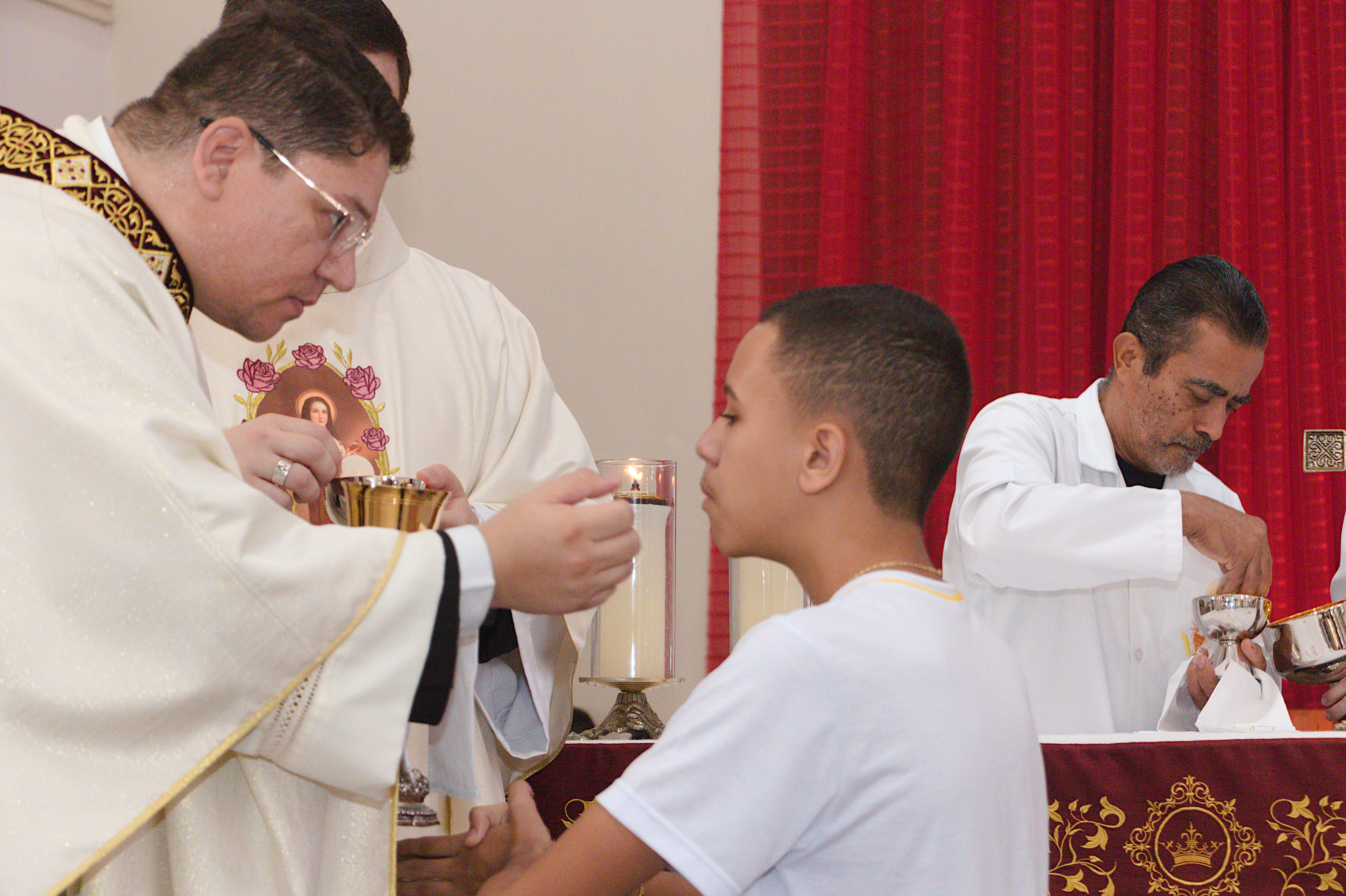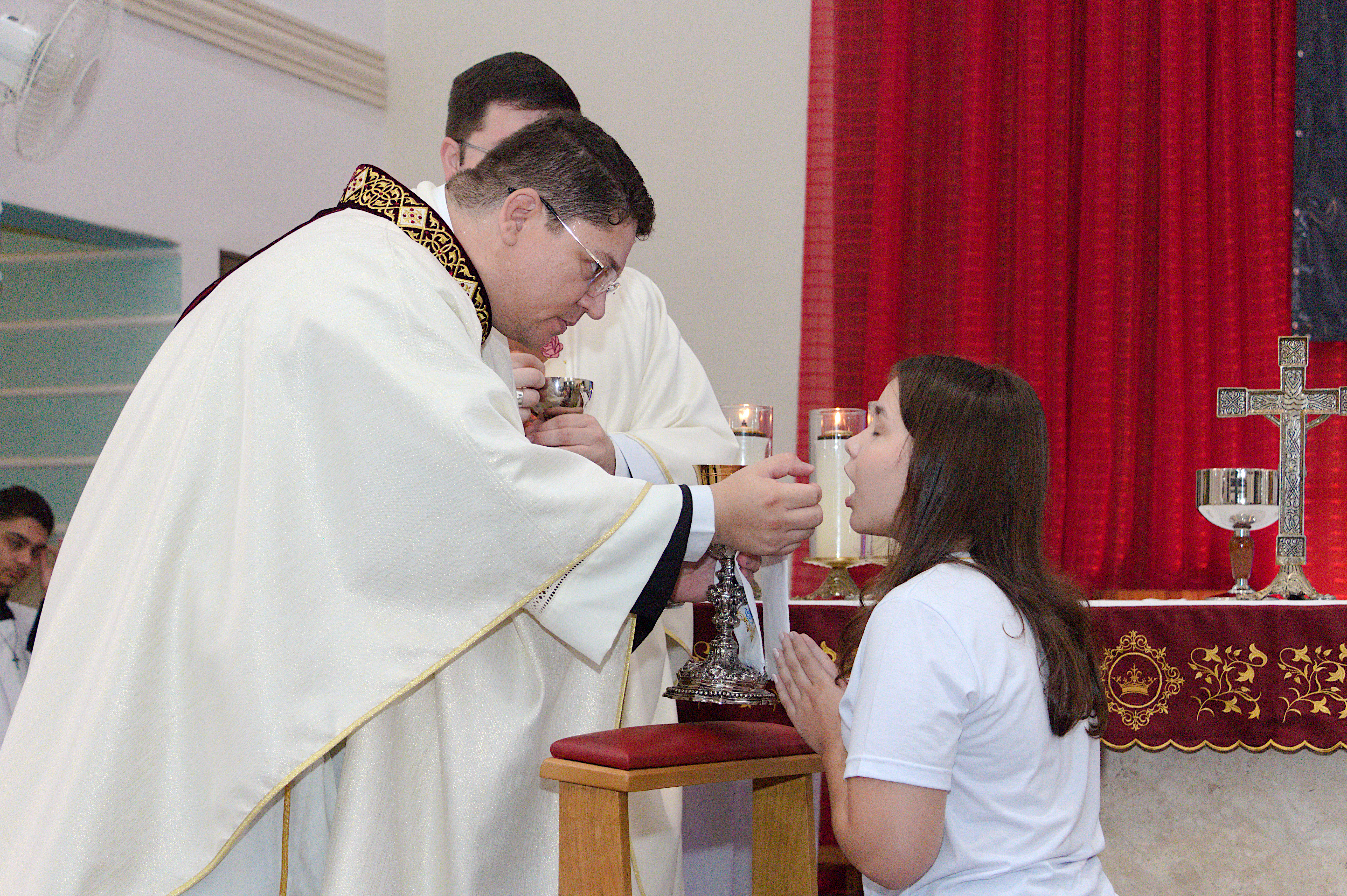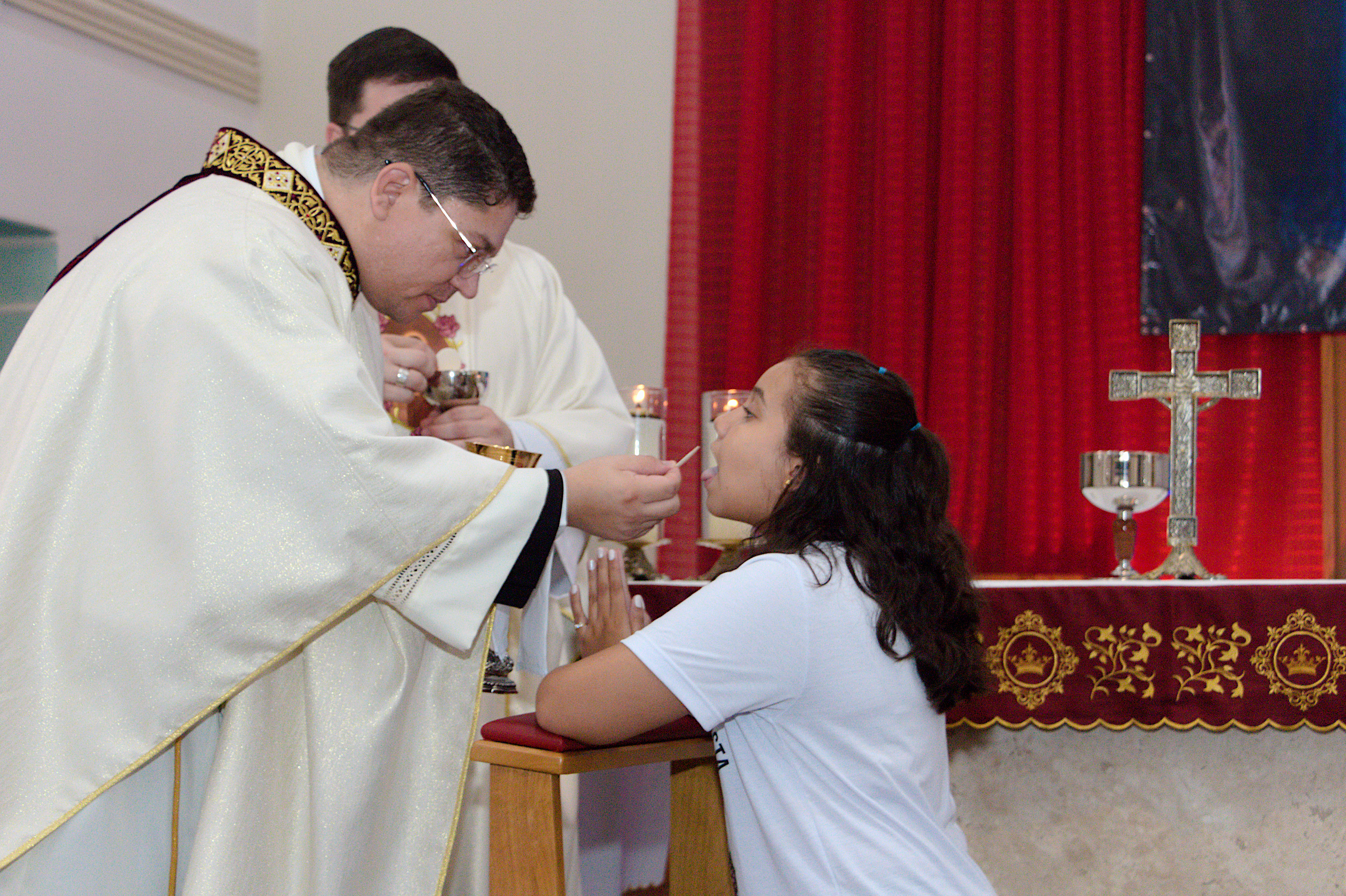momento em que cada criança recebeu Jesus pela primeira vez na Eucaristia.